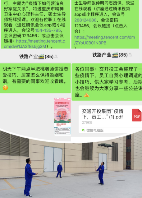 五是關(guān)心關(guān)愛職工,幫扶慰問暖人心。動態(tài)掌握職工因疫致困情況,積極做好員工疏導(dǎo)和慰問幫扶工作,幫助困難職工3人;及時(shí)轉(zhuǎn)發(fā)緩解壓力、心理講座等相關(guān)視頻10余條;為一線人員購置羽毛球拍,發(fā)放生活物資 4000余元,保障一線職工需要,豐富一線職工活動。