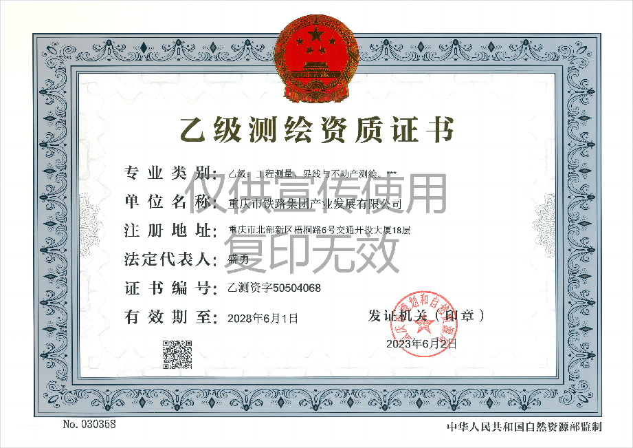 近日,市鐵路集團(tuán)產(chǎn)業(yè)公司成功取得由重慶市規(guī)劃和自然資源局頒發(fā)的,工程測量、界線與不動產(chǎn)測繪專業(yè)“乙級測繪資質(zhì)”證書。