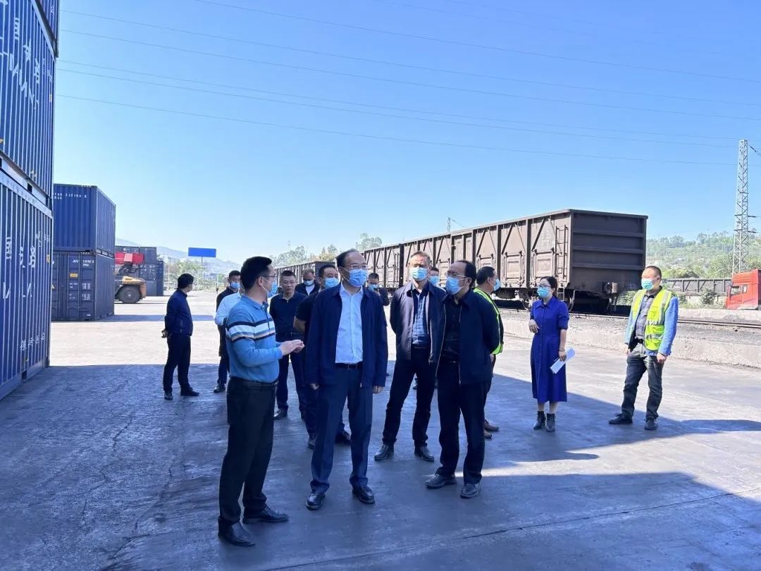 自10月份以來(lái),南涪公司貨運(yùn)量又呈強(qiáng)勢(shì)復(fù)蘇態(tài)勢(shì),南川東站時(shí)常一片繁忙有序的景象。10月19日上午,南川區(qū)區(qū)委副書記、區(qū)長(zhǎng)施崇剛率隊(duì)到南涪公司南川東站現(xiàn)場(chǎng)調(diào)研。