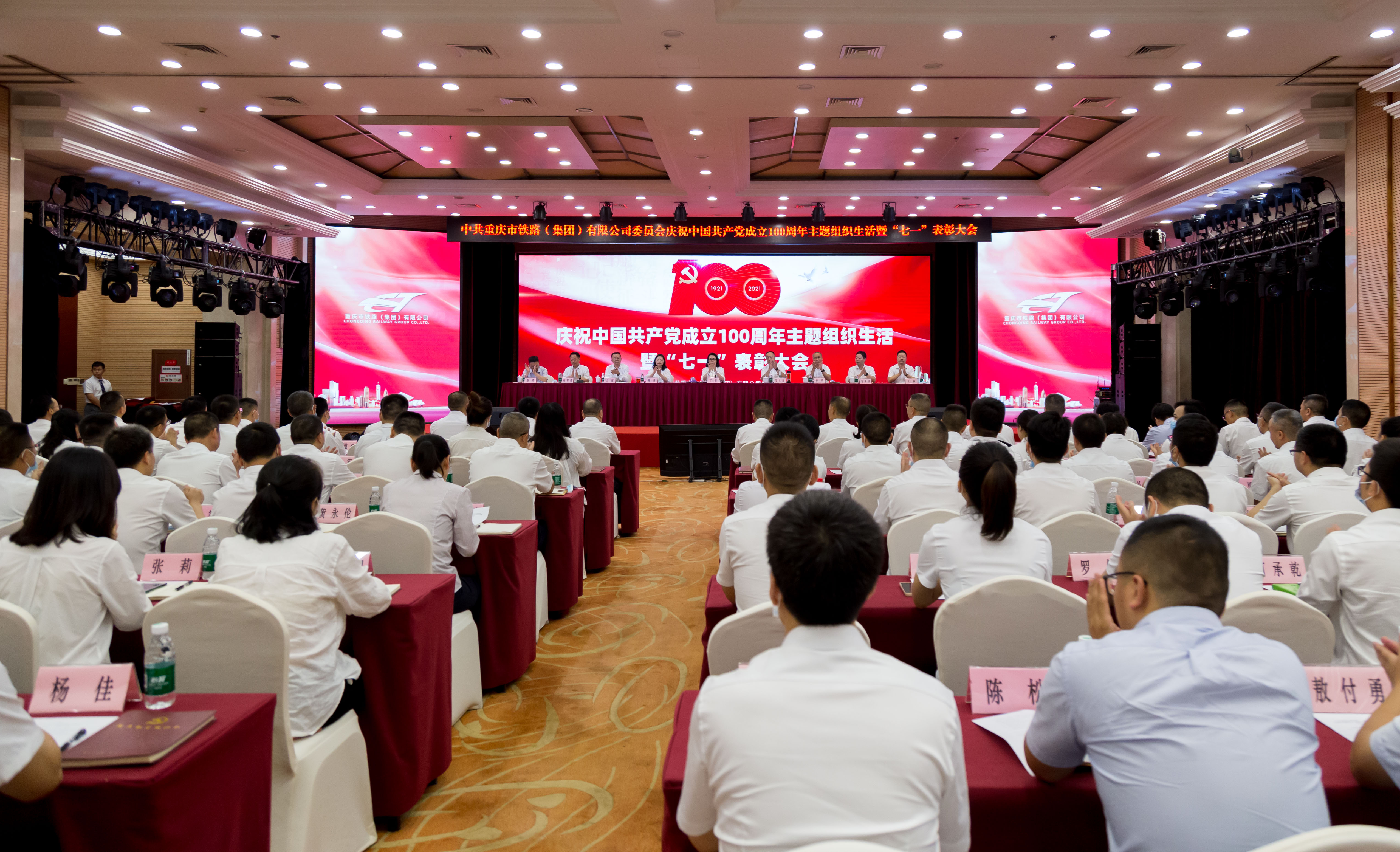 2021年6月30日下午,交通開投大廈三樓多功能廳內(nèi)氣氛熱烈、掌聲雷動。奏唱中華人民共和國國歌、重溫入黨誓詞、表彰先進典型、先進事跡報告、黨課精神洗禮……一項項莊嚴隆重的議程,將會場氣氛逐漸推向高潮,讓市鐵路集團慶祝中國共產(chǎn)黨成立100周年主題組織生活暨“七一”表彰大會成為學黨史、悟思想、辦實事、開新局的一次成果匯報大會,成為百年黨史和市域鐵路發(fā)展史深度融合的一場精神大餐,成為市鐵路集團奮斗謀新篇、啟航新征程的一次動員大會。