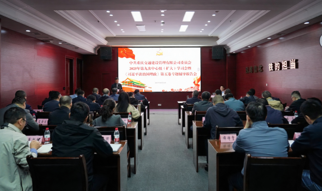 10月24日,市交通建設(shè)管理公司黨委組織召開2025年第九次中心組(擴大)學(xué)習(xí)會暨《習(xí)近平談治國理政》第五卷專題輔導(dǎo)報告會。公司黨委書記、董事長馬虎主持會議并作總結(jié)講話。
