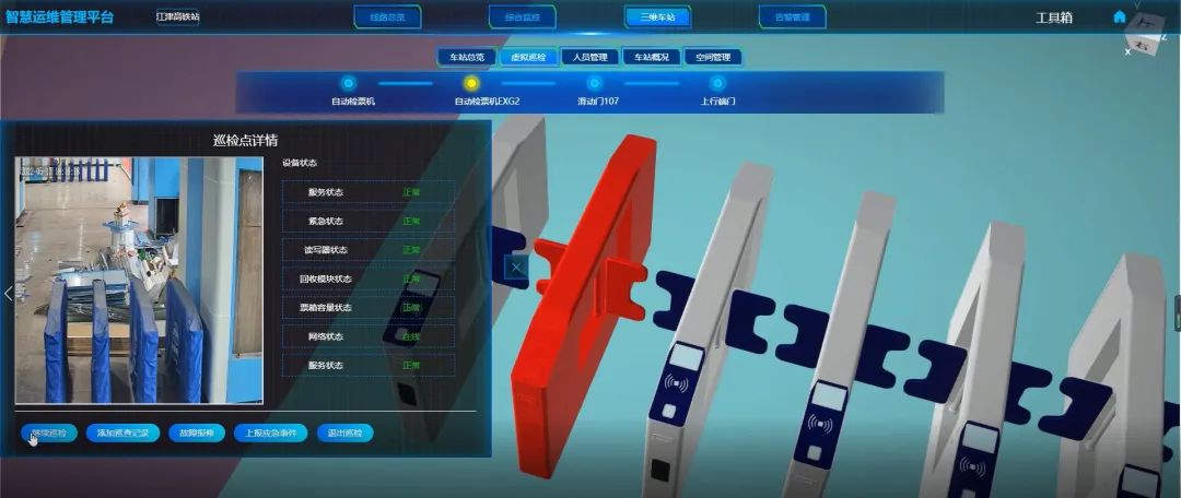 傳統(tǒng)軌道交通車站開站及關(guān)站過程復雜,涉及設備繁多,且絕大部分設備需要人工啟停,導致開關(guān)站耗時較長,而江跳線將一鍵開關(guān)站功能應用到全線車站。該功能結(jié)合運營實際需求優(yōu)化了開關(guān)站流程和聯(lián)動項目,通過對CCTV實時畫面、廣播語音播報、電扶梯、卷簾門等相關(guān)專業(yè)設備的聯(lián)控,科技賦能提高客運人員開關(guān)站效率,為實現(xiàn)江跳線智能化管理和智慧化運營邁進重要的一步。